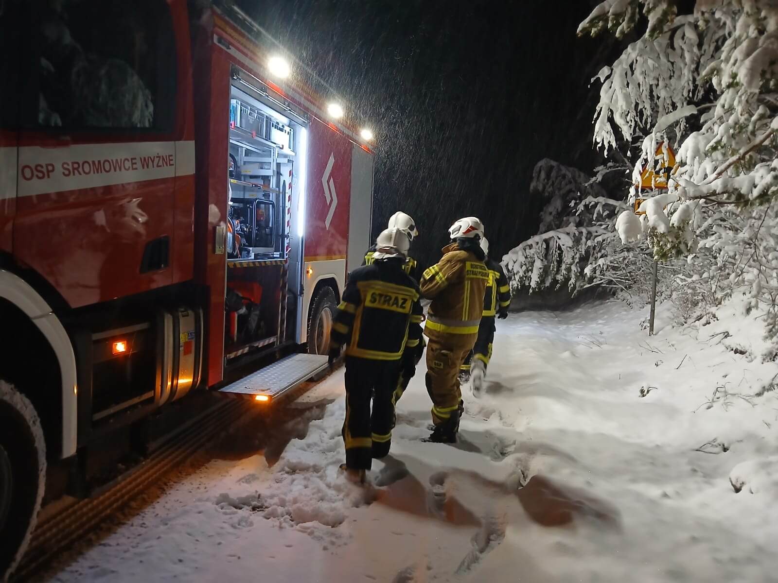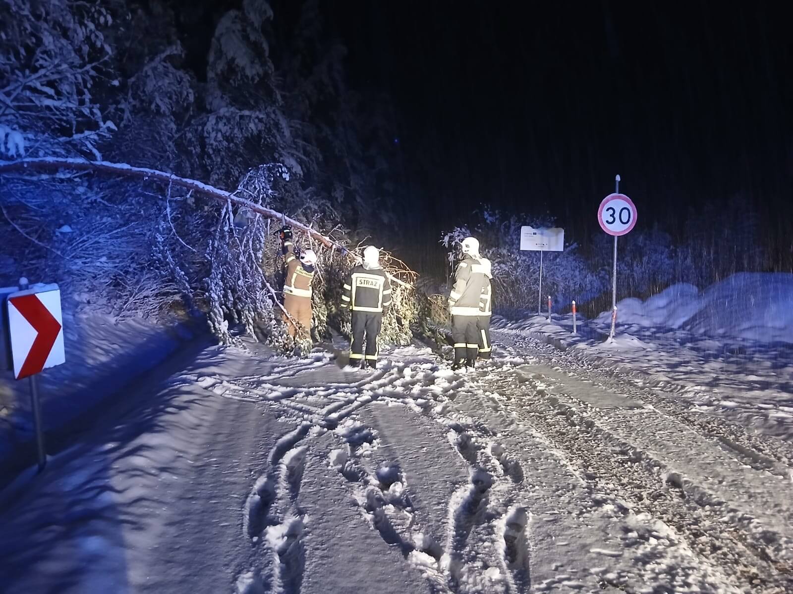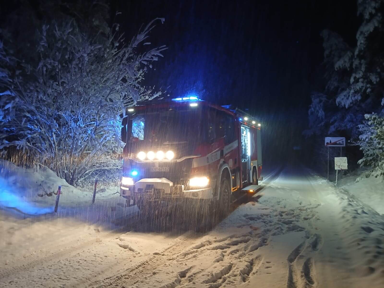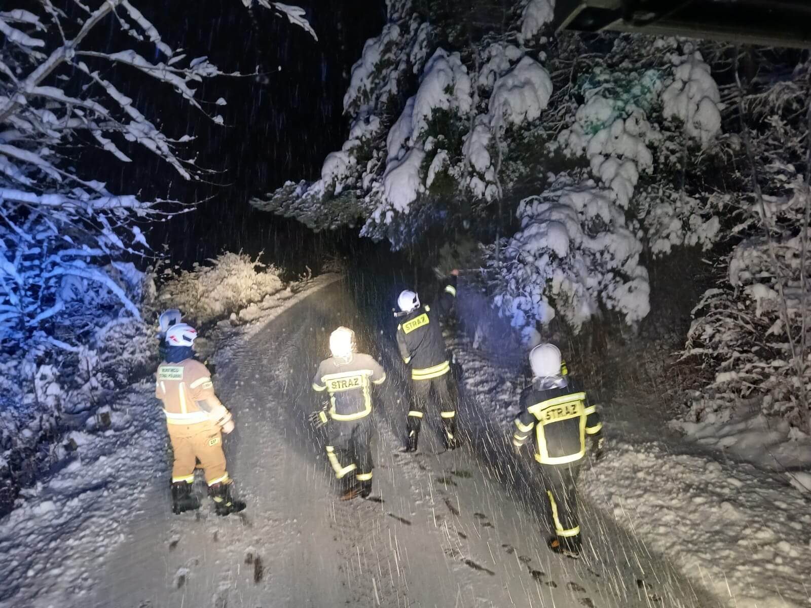 W zeszłym tygodniu dotarła do nas zima z intensywnymi opadami śniegu. Mokry i ciężki śnieg łamał przydrożne drzewa blokując przejazd na drodze powiatowej. Byliśmy dwukrotnie wzywani do usunięcia połamanych drzew z drogi. Na szczęście żaden z pojazdów poruszających się drogą nie został uszkodzony i nie było osób poszkodowanych.