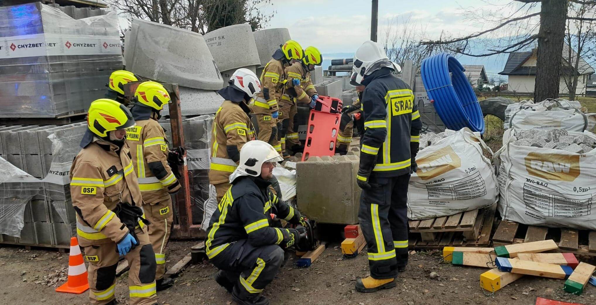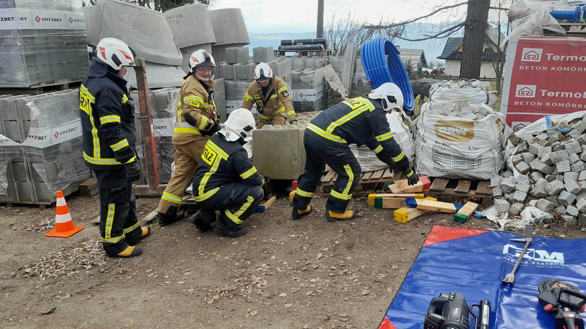 Nasz zastęp GCBA-Rt dostał zadanie związane z ratownictwem technicznym, a mianowicie mieliśmy wykonać dostęp do osoby poszkodowanej przygniecionej elementami budowlanymi.